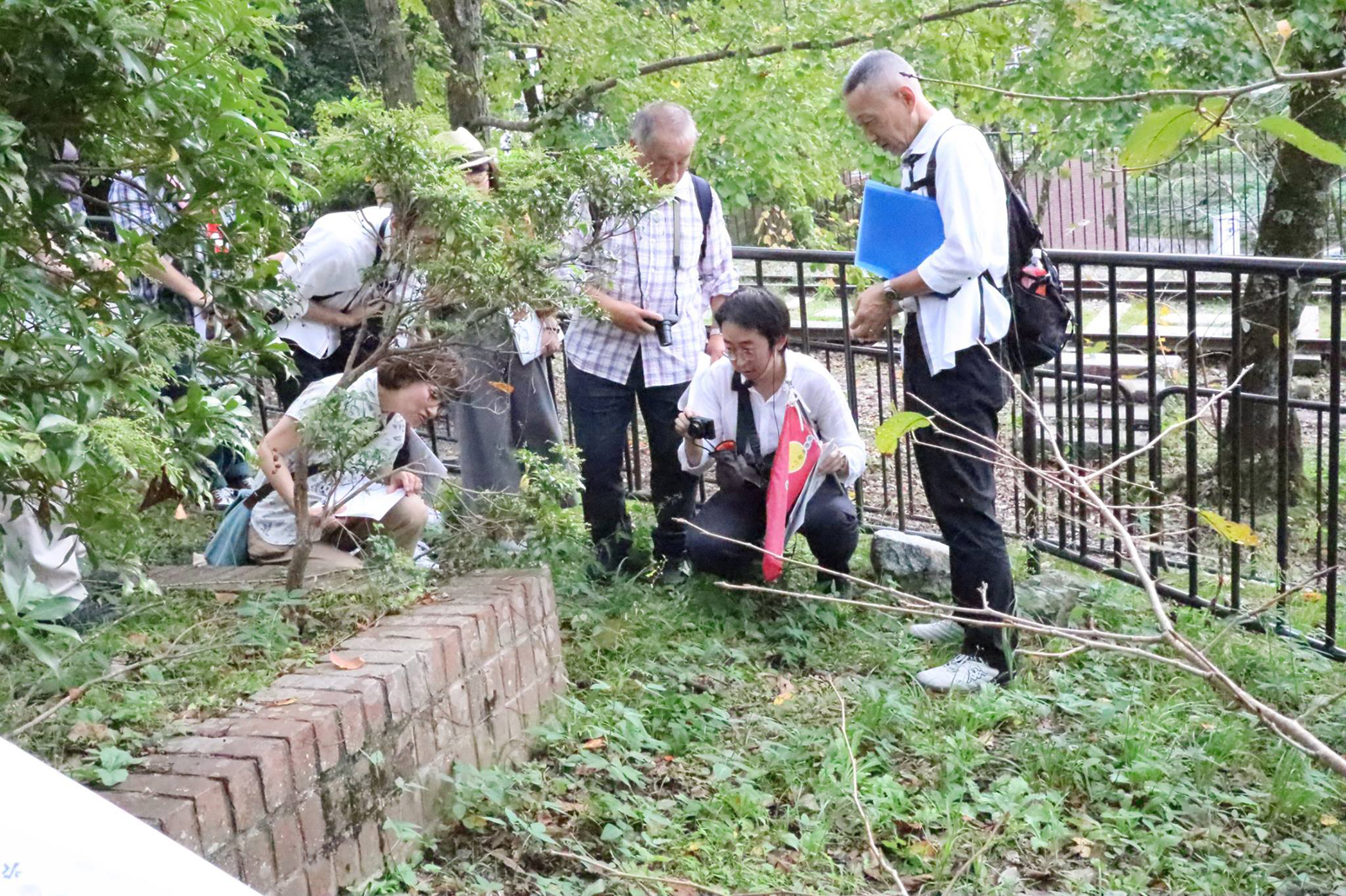 ▲京都岡崎で、岸和田煉瓦の発見にどよめく参加者。すでにみんな煉瓦目。(クリックで拡大)
