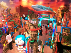 テレビセットとは違い、お客様に会場の臨場感を直接五感で感じてもらいます。音声、照明、技術などと綿密な打ち合わせをし、まるでドラえもんの世界に迷い込んだかのような錯覚に陥る雰囲気を各方面から作り上げていきます。