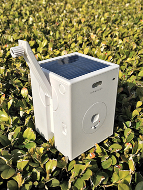 しかし、じっくり見てみれば、箱形の二眼レフカメラのモチーフを巧みに引用しながらも、ソーラーパネルの面積や陽当たりを考えてトップパネルと一体化させたり、手回し発電機を回す際のグリップ感を考慮するなど、この製品に与えられた機能性に基づく理に叶ったデザインがなされていることが理解できる。
