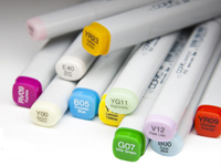 コピックは、Tooが開発したアルコールマーカーのブランドで、プロダクト/建築/ファッションなどのデザイン・教育分野や、イラストレーション/マンガ、絵画からホビー・クラフト系でも利用されている汎用性の高い製品。