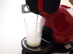 ●手軽さを極める ネスレ日本の「ネスカフェ ドルチェ グスト」を使っていて、感動と言っていいくらいありがたかったのは、その日々のメインテナンスの異常なほどの簡単さ。とにかく、洗い物が少ないのだ。1日使ったら、することといえば、タンクに残った水を捨てることと、カプセルを入れる小さな部品(写真02)を水洗いすることだけ。その部品も、洗いやすい形状だから洗うといっても10秒程度で終わる。きちんと豆を使うコーヒーメーカーよりも、この手の専用カプセルを入れればOK(写真03)のコーヒーメーカーが有利なのは、その淹れ方、片づけ方の簡単さに尽きるわけで、それがかなり極まったのが「ネスカフェ ドルチェ グスト」のシステムだと思う。それでいて、十分に美味しいのだから、使い始めると止まらない。確実にコーヒーを飲む頻度が上がるのだ。 実際に使ってみると分かるのだけど、カプセルを入れる部品部分も特に汚れることがなく、淹れた後の滴もほとんど垂れないから、実のところ、連続して淹れる場合、カプセルを直接ゴミ箱に入れてしまえば(使用済みカプセルを一時的に捨てておくための容器も付属している/写真04)、エスプレッソの次にカプチーノを淹れて、その後に宇治抹茶ラテを淹れる、といったことが流し台に行くことなくできてしまう。 操作も、電源を入れたら、カプセルを入れる部分を取り出してカプセルを挿入(写真05)、後はレバーを倒してコーヒーを抽出(写真06)。好きな分量まで淹れたら、レバーを戻して、カプセルをとり出すだけ(写真07)。時間にして30秒もかからない。インスタントコーヒーを淹れるより簡単に思えた。 カプチーノのように、ミルクを使う飲み物を作る場合は、先にミルクのカプセル(写真08)を使って抽出(写真09)、その後、コーヒーカプセルを使って、同じカップに注ぐ(写真10)。そのため、手間は二倍になるが、ミルクを温めて、泡立てて、カップに注ぐ手間を考えれば、やはり楽ちん。チャイティーラテ(写真11)やチョコチーノ(写真12)などの飲み物の場合、甘味もすでに入っていて、その加減が中々絶妙なので、撹拌するスプーンさえ必要ないのだ。この簡単さと、「ドルチェ グスト メロディ」のコンパクトさは、やはり、iPodが登場した時の「これは楽だ!」と思った感覚に似ている。「そんなもんで、ちゃんと聴けるの? 面倒なだけじゃない?」といった批判も、似たような感じだし。