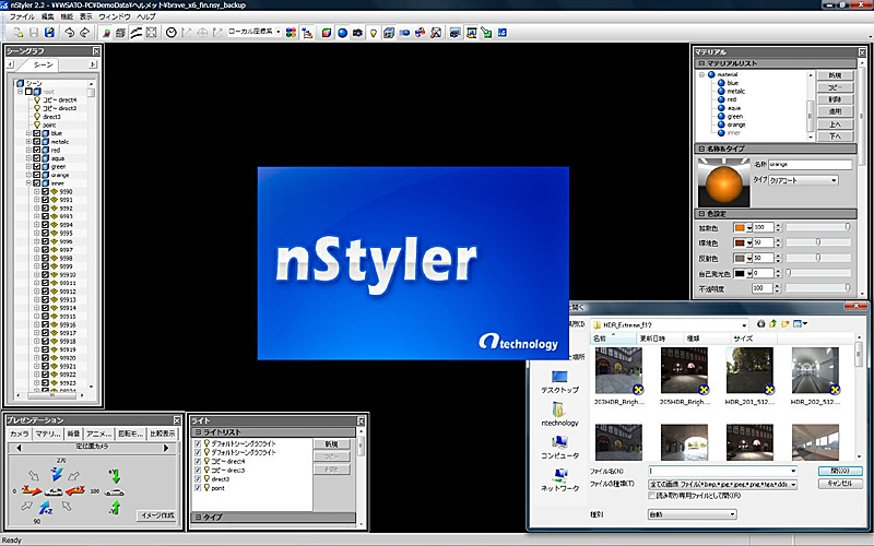 7.形状読込み、マテリアル設定、カメラ設定等のレンダリングシーン設定・変更を行うスタンドアローンアプリケーションを標準添付