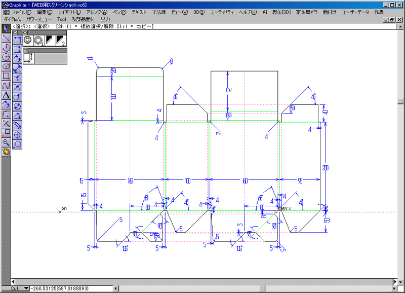 日本で一番売れている箱専用のCADソフトです。オリジナリティ溢れる箱を設計しませんか? 弊社の「BOX-Vellum GRAPHITE5」はそれを実現します!
