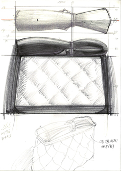同じく日本史展で発表した「髷貯金箱」のスケッチです(画像3)。原寸のラインドローイングを検討した直後に描いた、1/10スケールの最終スケッチです。このスケッチは大まかな寸法取りをしたり、ディテールイメージをつかむためのものです。日本史展のディレクターである岡田栄造氏へのプレゼンも、このスケッチで行いました。
