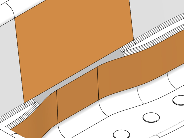 1-1.まずエッジ全体にフィレットを作成してみる。滑らかでないことが分かる(クリックで拡大)